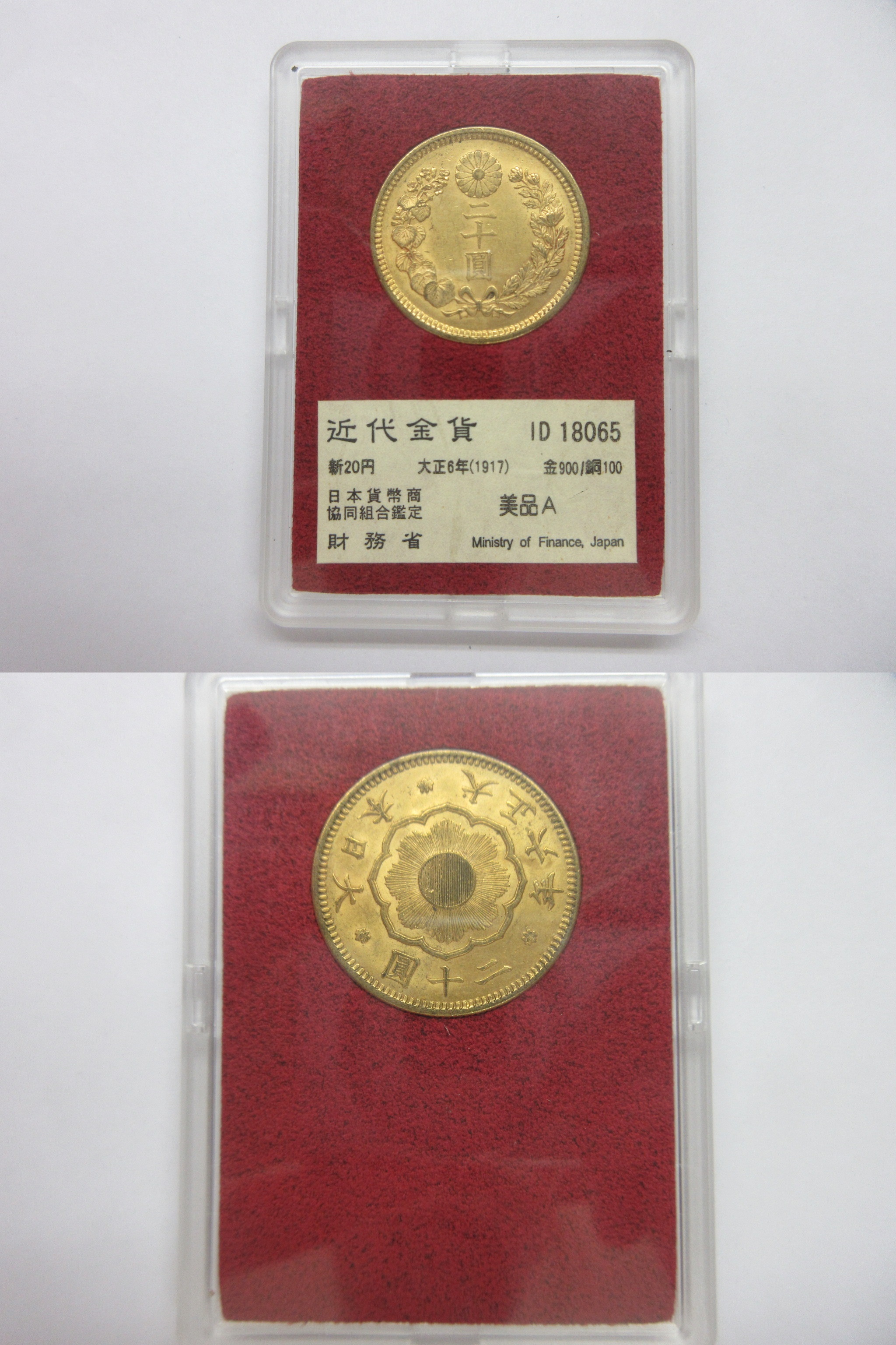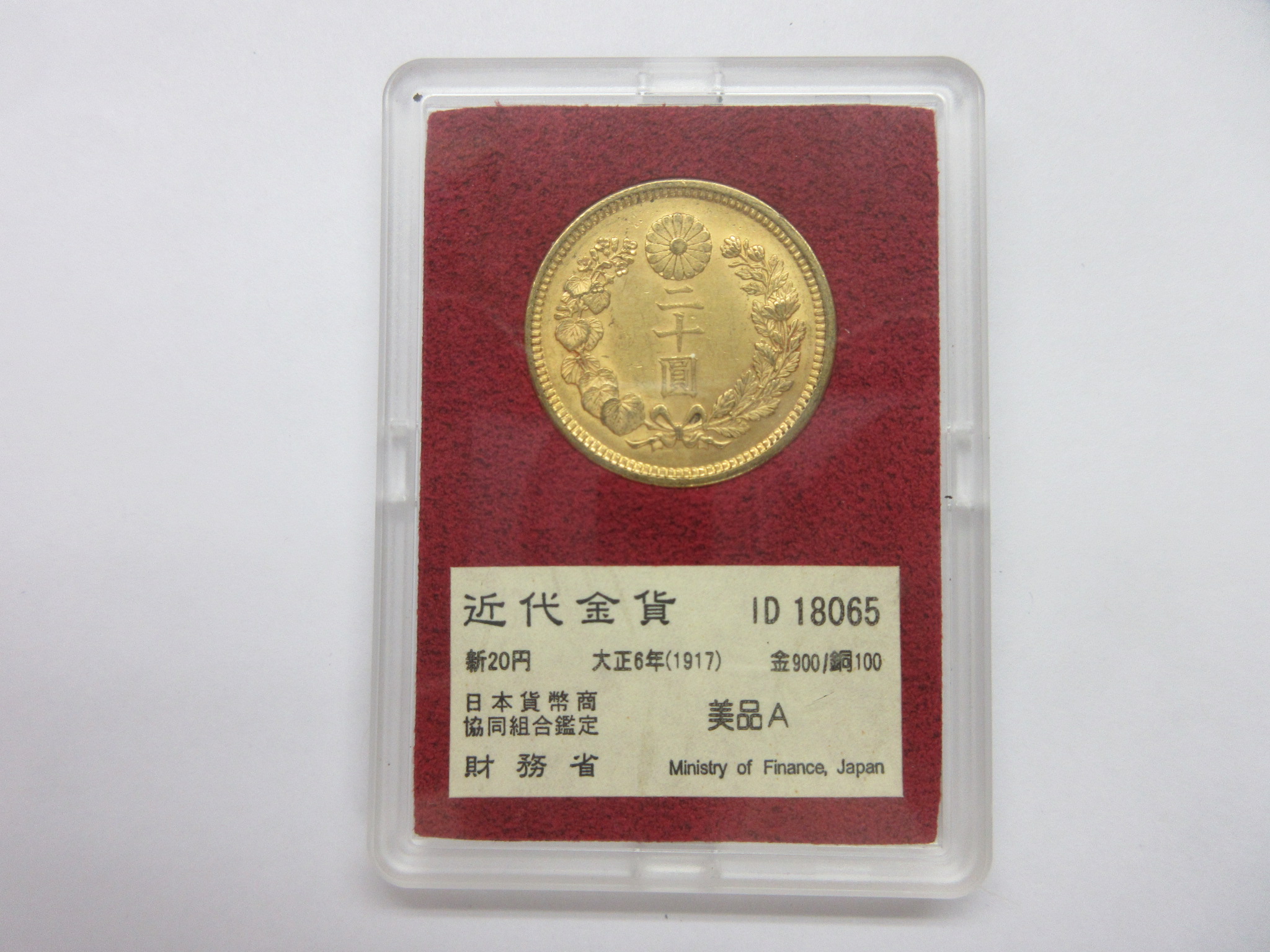 20円金貨大正6年 組合鑑定書付 63887 <未使用?> 16.7g |